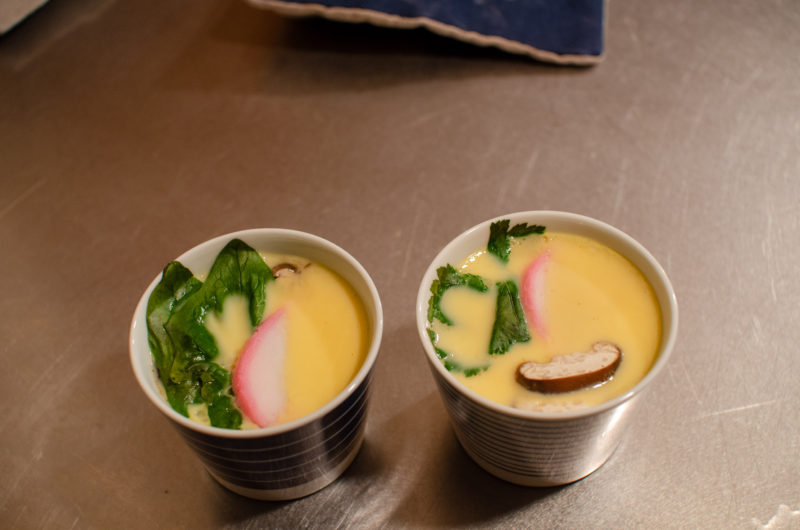 栗の甘露煮と卵液にも甘露煮のシロップを入れた甘い茶碗蒸し。