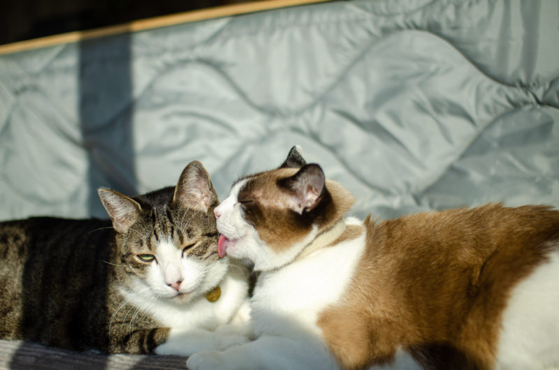 誰かに毛繕いしてあげるときは、自分で舐められない顔周りや後頭部、首の後ろなどをしてあげることが多いです。