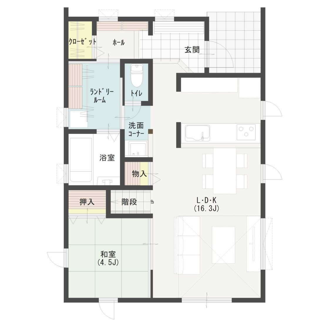 幅広く活動しやすいランドリールーム。