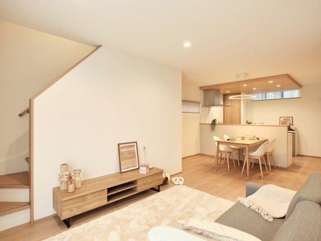 リビング・ダイニング・キッチンを一体とした広々としたLDKは約19帖。