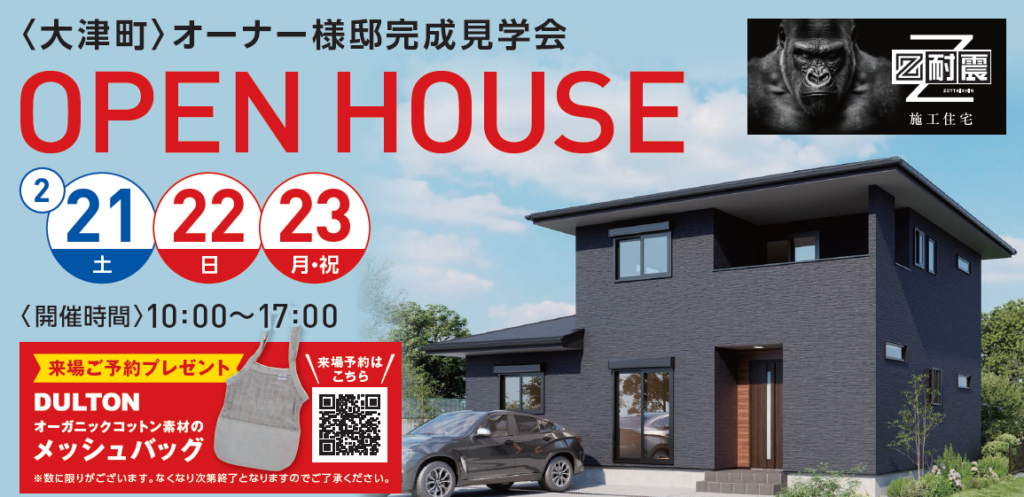 | イベント名 | 〈大津町〉オーナー様邸 完成見学会 OPEN HOUSE 開催! |