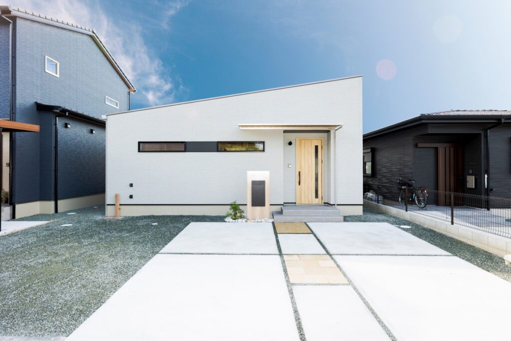 ・片流れガルバリウム鋼板屋根のスタイリッシュな外観